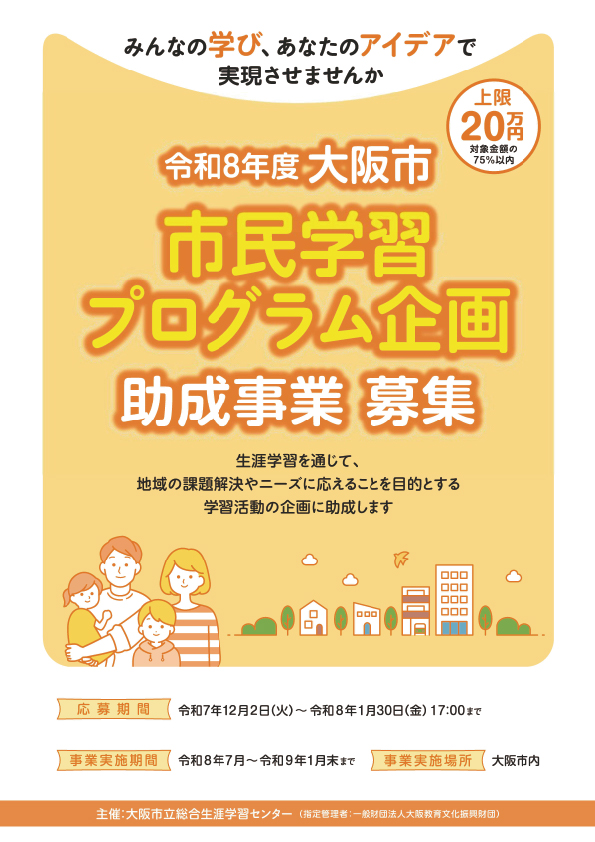 【令和8年度 大阪市「市民学習プログラム企画」助成事業】生涯学習活動のアイデアに助成します!
