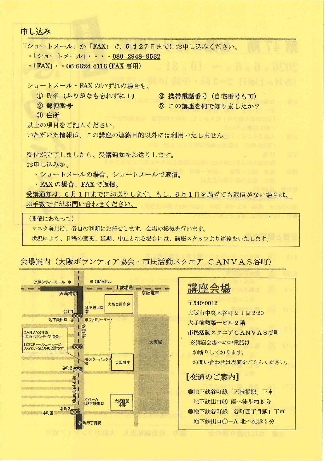 ※申込みが5人に満たない場合は開講を取りやめることがあります。