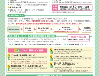 詳細は、以下の大阪市立総合生涯学習センターホームページから登録団体募集パンフレットをご覧ください。