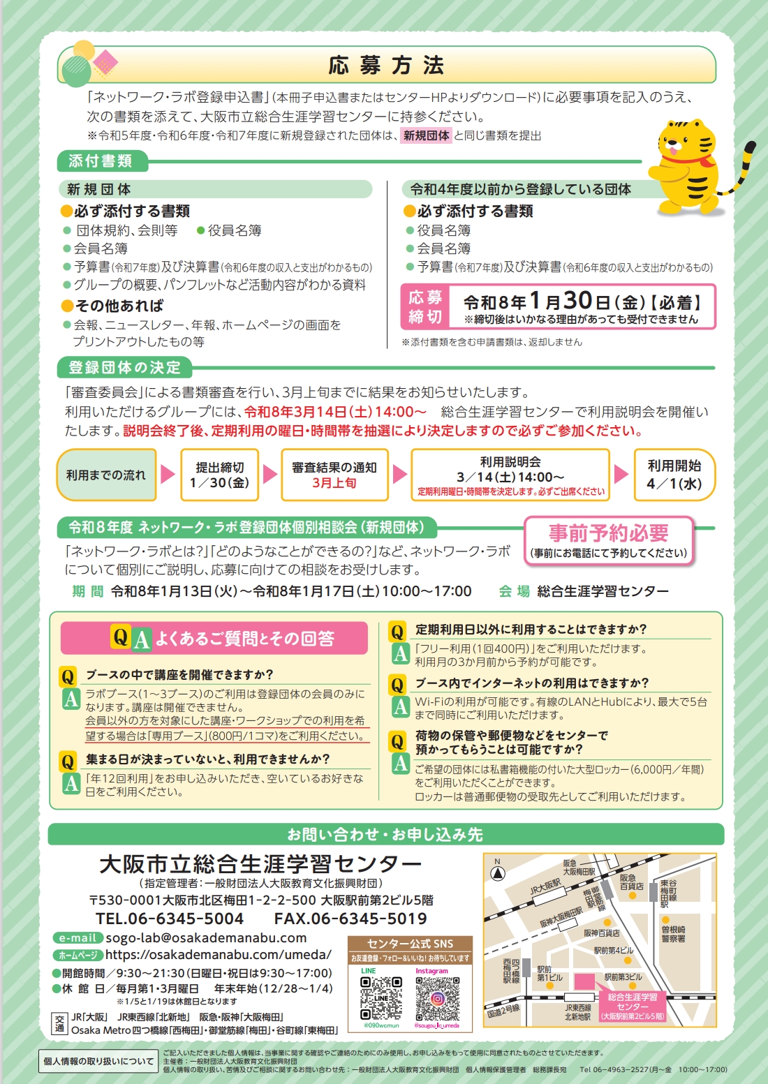 担当者:大阪市立総合生涯学習センター 企画推進課 ネットワーク・ラボ担当