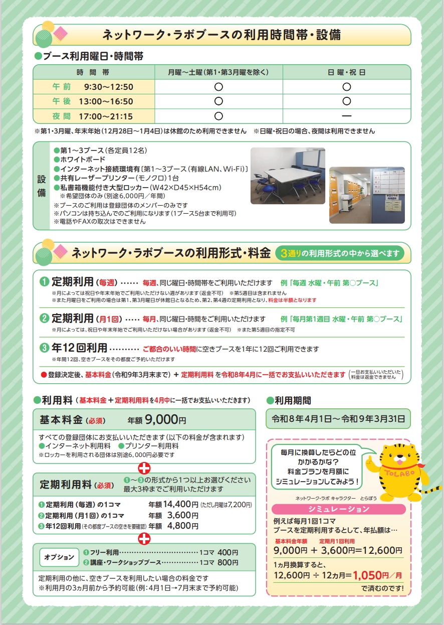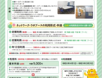 「ネットワーク・ラボとは?」「どのようなことができるの?」など、ネットワーク・ラボについて個別にご説明し、応募に向けての相談をお受けします。事前にお電話にて予約してください。