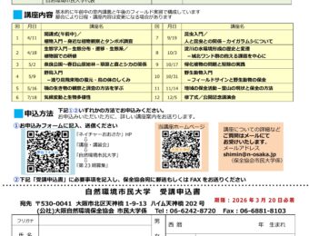 | 団体・施設名 | 公益社団法人 大阪自然環境保全協会 |
