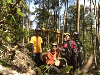 ・実際に山林に入り、宮崎さんの指導で林業の全て体験