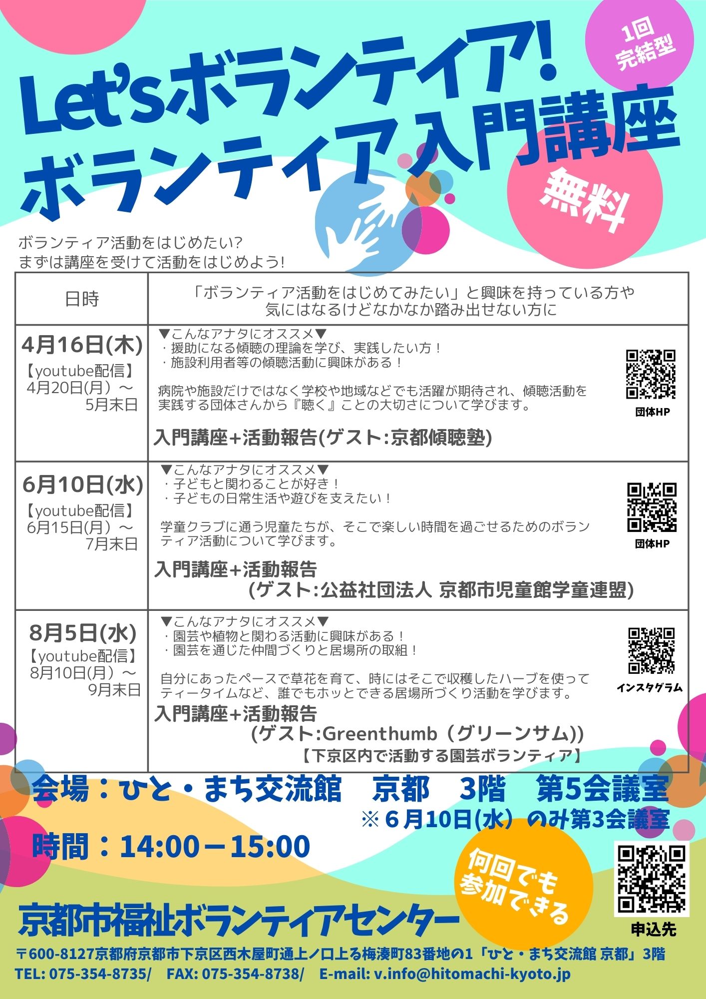 ボランティアをはじめてみたい方、久しぶりに活動を再開したい方、ゲスト団体のお話を気軽に聞いてみたい方など、「ちょっと気になるな」という方も大歓迎です!