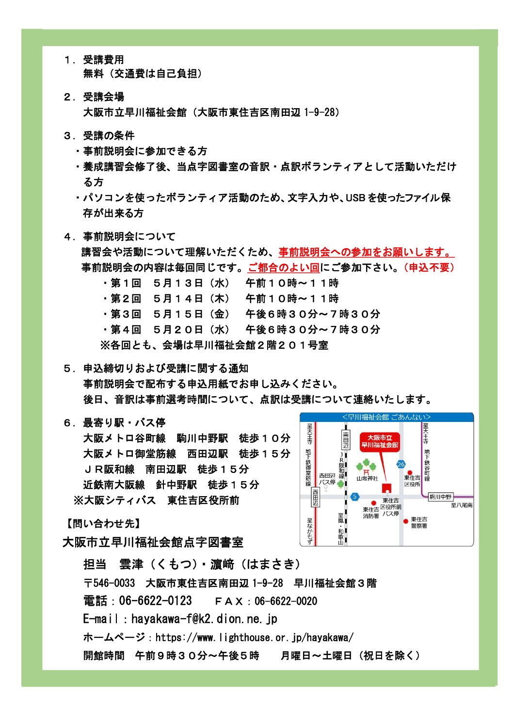 | 団体・施設名 | 大阪市立早川福祉会館点字図書室 |