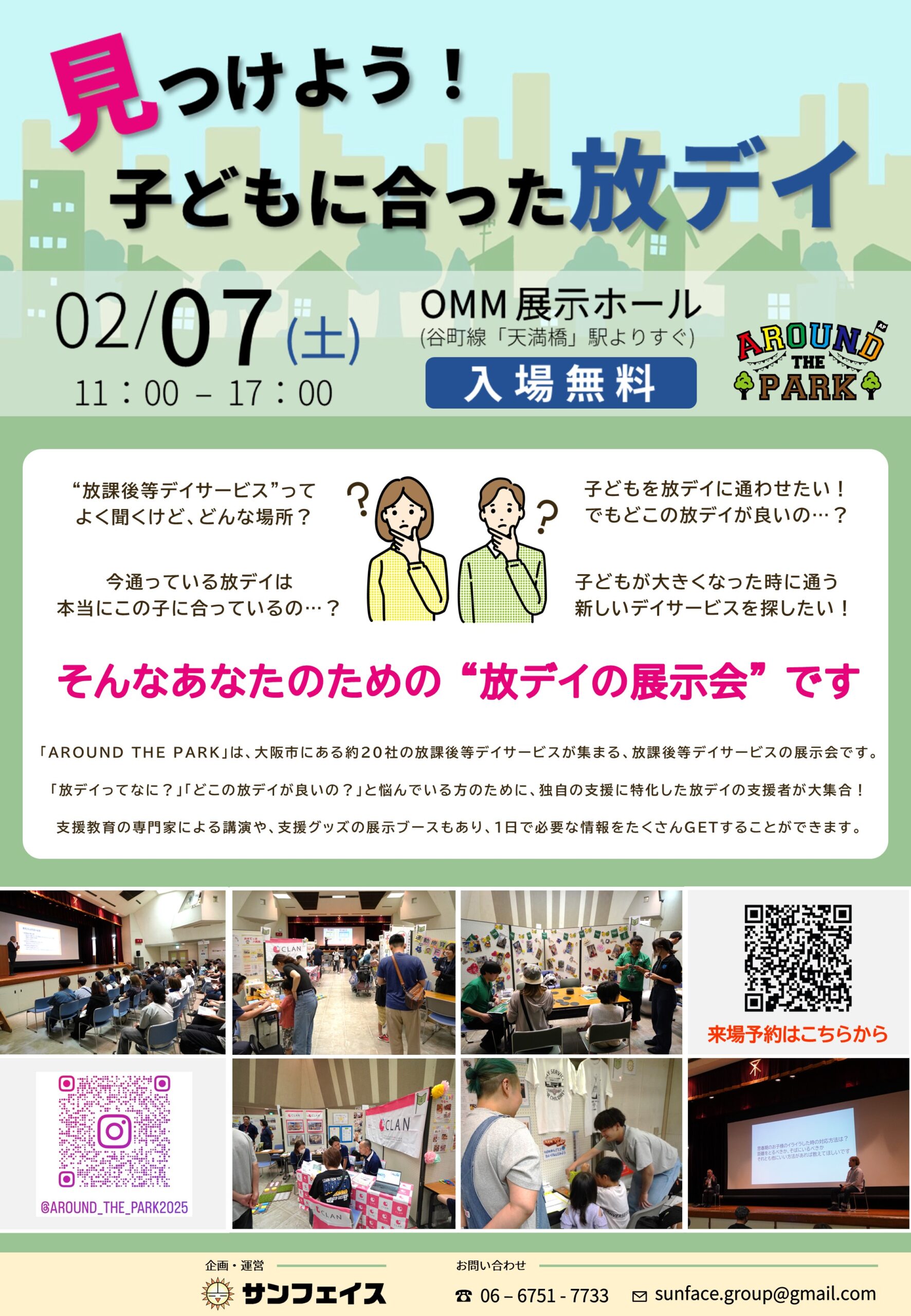 【AROUND THE PARK】 は 「放課後等デイサービス」、「利用者」、「求職者」の3者が集まり、事業所の特色を知ってもらい、新しいデイサービスを探している「利用者」や、働く場所を探している「求職者」と放課後等デイサービスがマッチングできるイベントです。