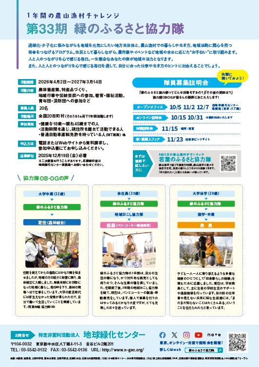 2026年度 第33期「緑のふるさと協力隊」参加者募集!