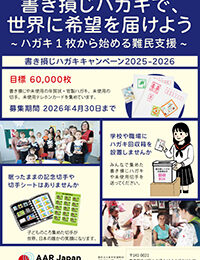 紛争や弾圧によって国を追われた難民や、地震や水害に被災された方々のために、自分でも何か行動したいと思っている皆さん、学校や職場の仲間と、書き損じハガキと未使用切手を集めて、AAR Japan[難民を助ける会]に送っていただけませんか?